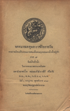 พิมพ์เป็นที่ระลึกในงานพระราชทานเพลิงศพ มหาอำมาตย์โท หม่อมเจ้าธำรงศิริ ศรีธวัช วันที่ 2 กรกฎาคม พุทธศักราช 2477 ณเมรุวัดมกุฏกษัตริยาราม