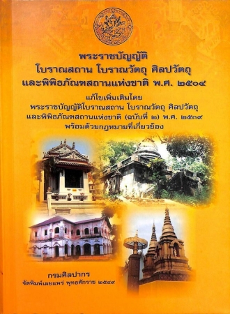 พระราชบัญญัติโบราณสถาน โบราณวัตถุ ศิลปวัตถุ และพิพิธภัณฑสถานแห่งชาติ พ.ศ. 2504 แก้ไขเพิ่มเติมโดย พระราชบัญญัติโบราณสถาน โบราณวัตถุ ศิลปวัตถุ และพิพิธภัณฑสถานแห่งชาติ (ฉบับที่ 2) พ.ศ. 2535 เป็นกฎหมายสำคัญที่กรมศิลปากรใช้ในการอนุรักษ์ ปกป้องคุ้มครองโบราณสถาน โบราณวัตถุ ศิลปวัตถุ สมควรที่จะเผยแพร่ให้ประชาชนชาวไทยให้ได้รับรู้